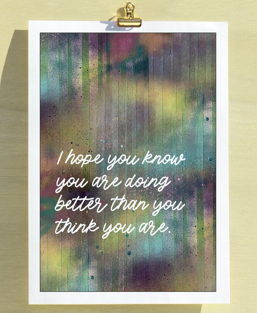 Giclée Art Print with digital words over mixed media spray paint and tape.