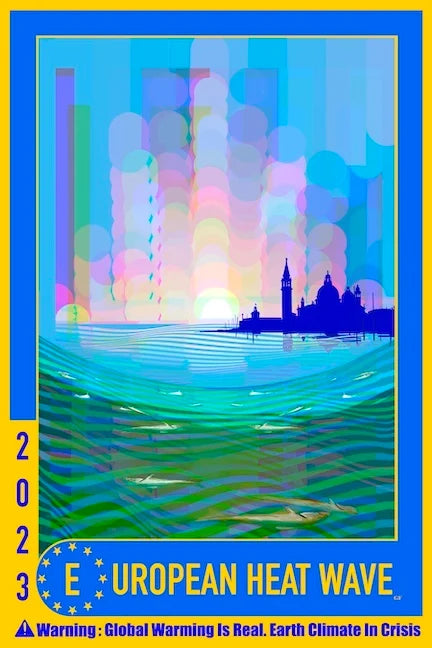 This poster captures the devastating summer of 2023, when Europe faced one of the deadliest and most widespread heat waves in its history — with wildfires, droughts, and collapsing infrastructure leaving communities and ecosystems overwhelmed.