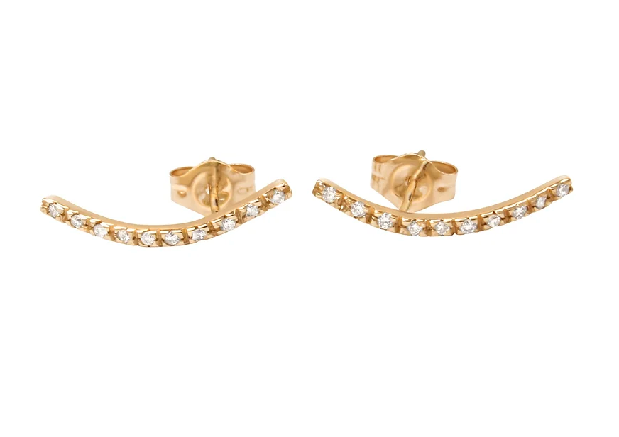 Long diamond bar earrings but with a gentle bow that curves up your ear. Slightly edgy and classic at the same time.