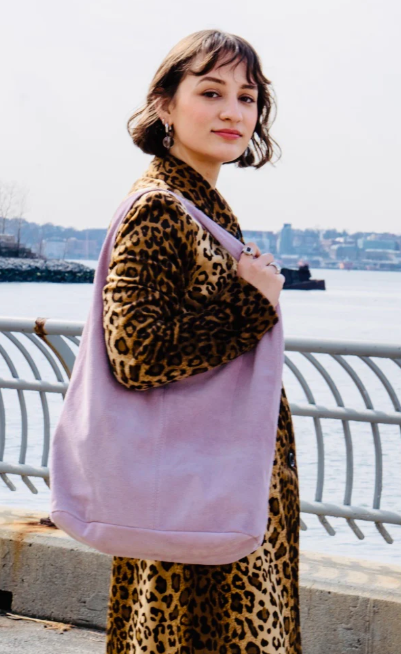 Suede Boho Zip-Top Shoulder Bag / Lavender Pink